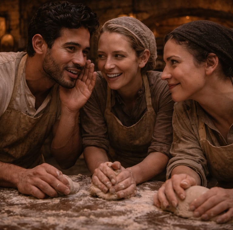 No one answers. The conversation dissolves back into the rhythm of kneading, as if the question was never asked at all.